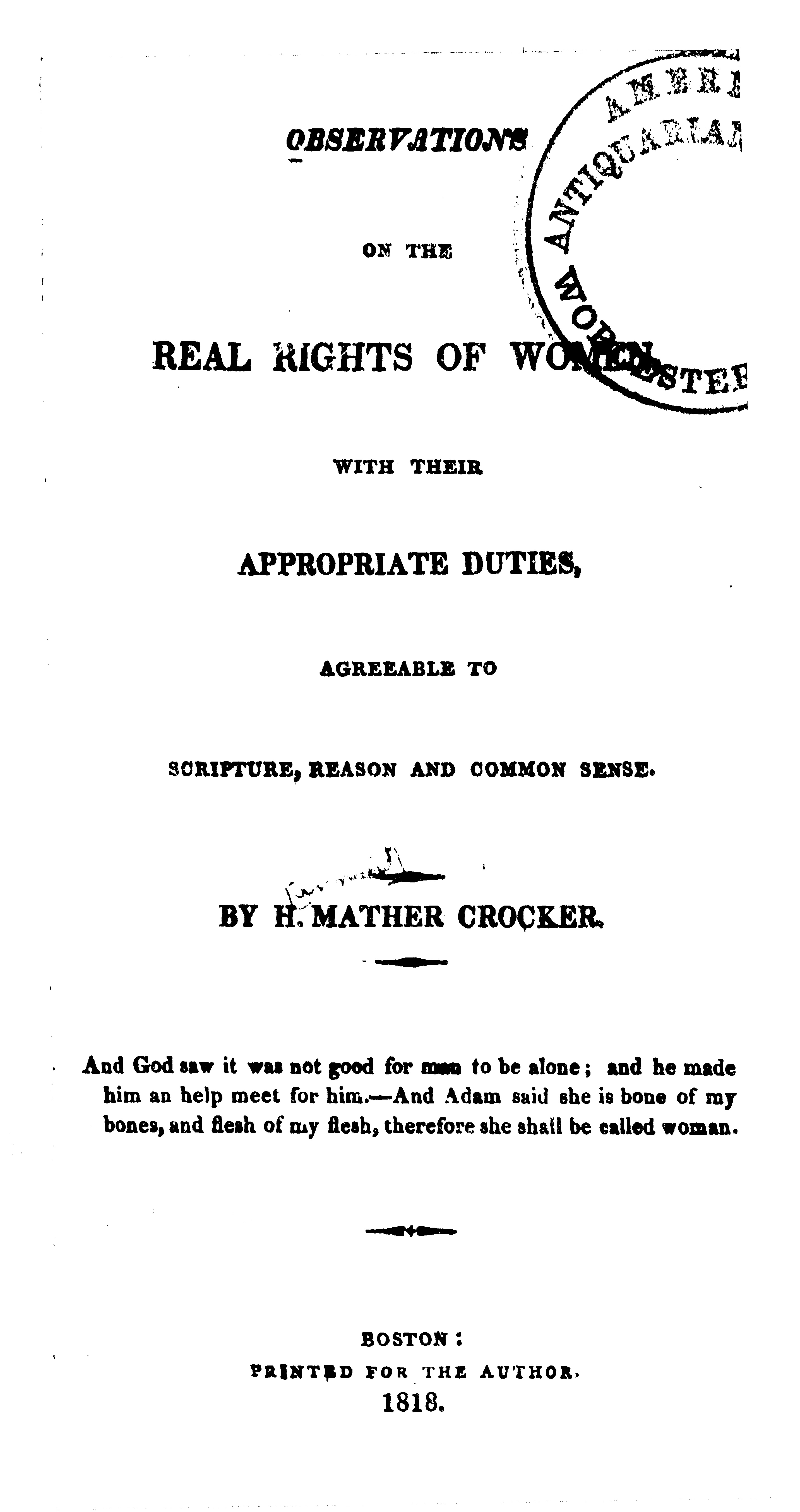 - Observations On The Real Rights Of Women With Their Appropriate Duties Hannah Mather Crocker Google Books - Based On Joseph Sabin's Famed To Ask Other Readers Questions About Observations On The Real Rights Of Women, Please Sign Up.